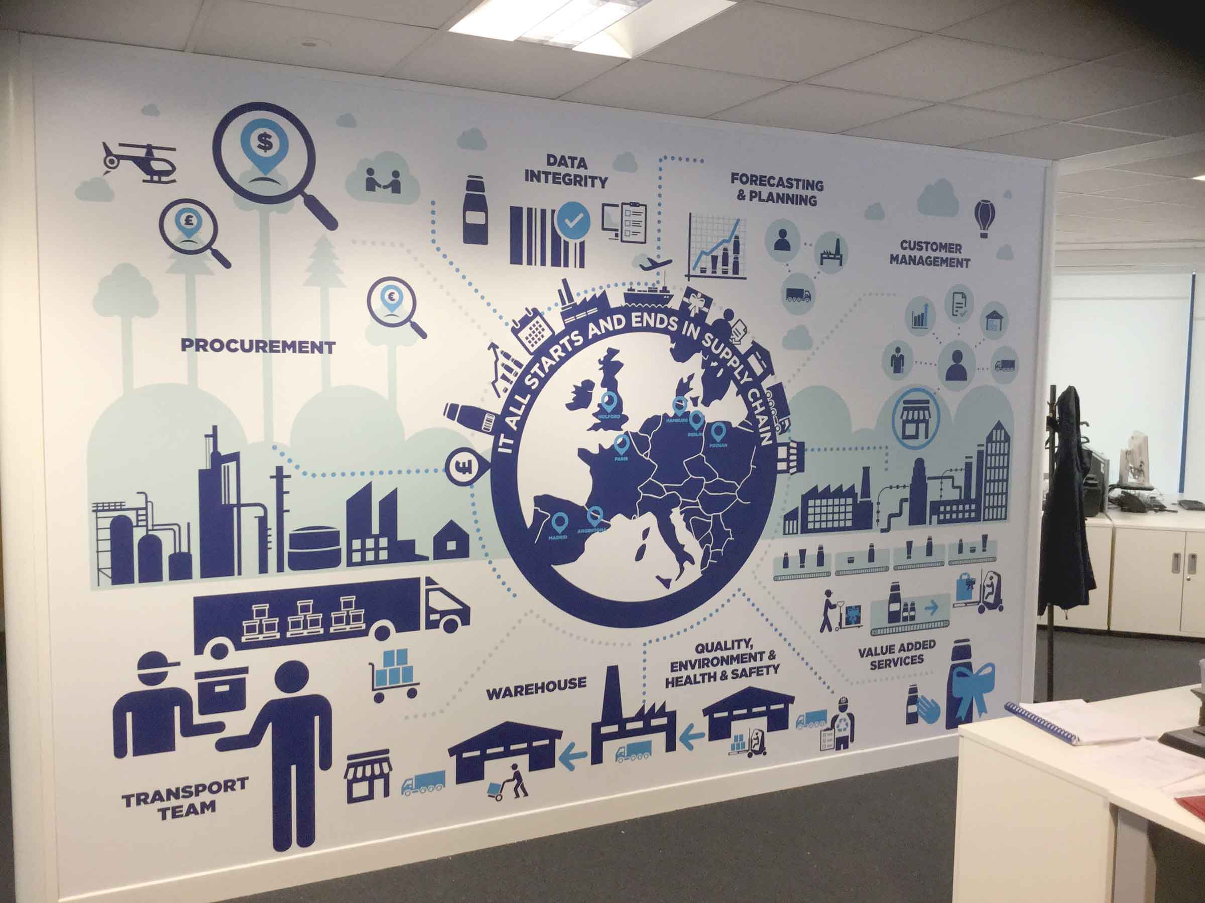 Based in the Midlands and working across the UK, our friendly team of designers and installers bring colour, creativity and purpose to every environment — helping you turn blank walls into something extraordinary.