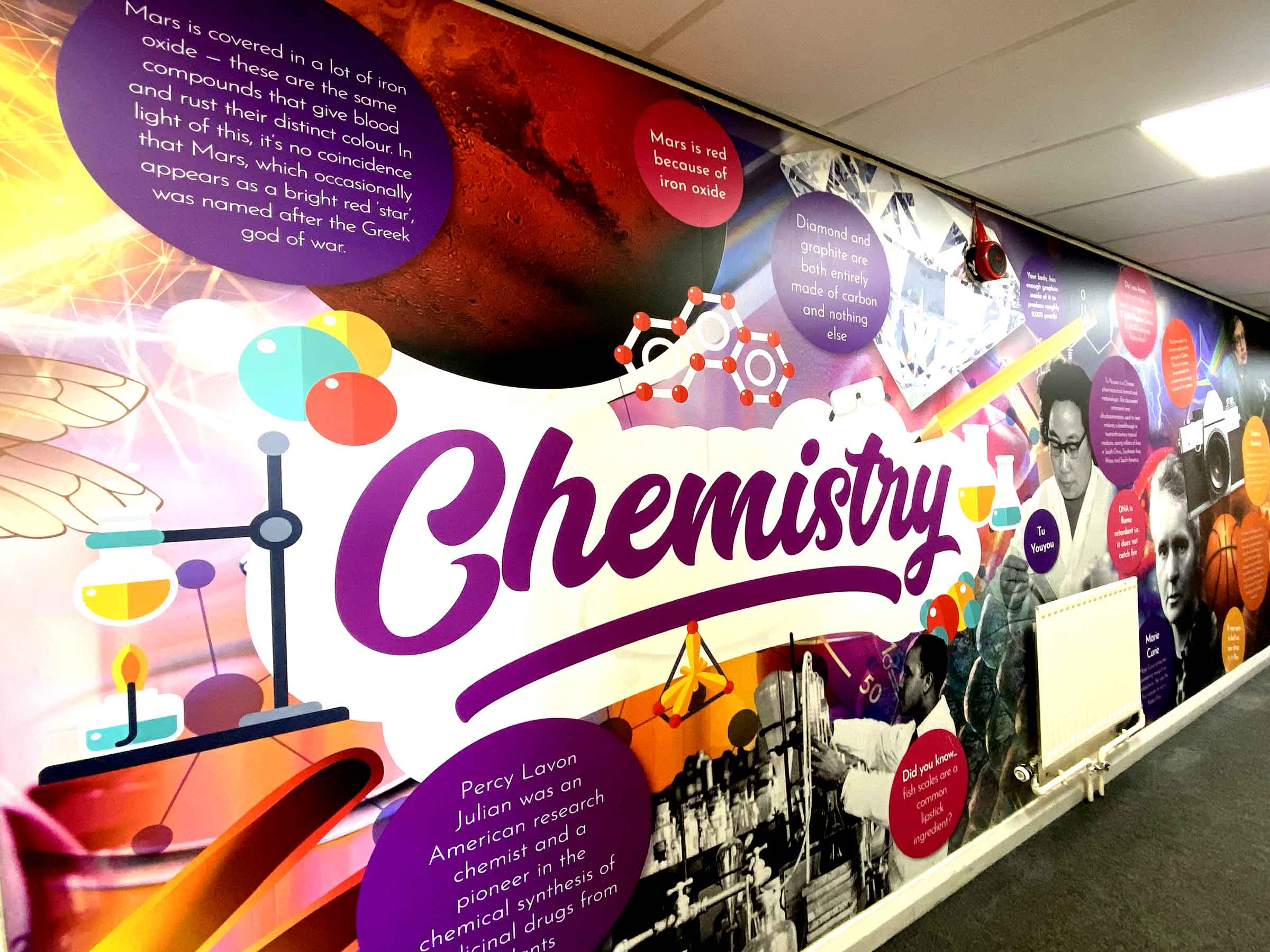 Having worked with Creative Corridors on several projects now, we are delighted with their service and product. Simon and his team are very friendly and accommodating, putting up with numerous changes in our design briefs. Staff and students and visitors have been very complimentary about the new wall vinyls around the school, which have brightened up the plain corridors and subject zones. We could not fault their service and would definitely work with the team again. Communication & Marketing Officer